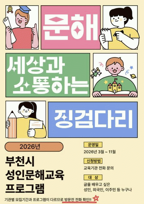 | ºÎõ½Ã, ¼ºÀι®Çر³À° '¹®ÇØ, ¼¼»ó°ú ¼ÒÅëÇϴ ¡°Ë´Ù¸®' ¿î¿µ °ü³» 12°³ ±â°ü¿¡¼ ÃÑ 33°³ ¹®Çر³À° ÇÁ·Î±×·¥ ¿î¿µ =Çѽ¸ñ ±âÀÚ |
