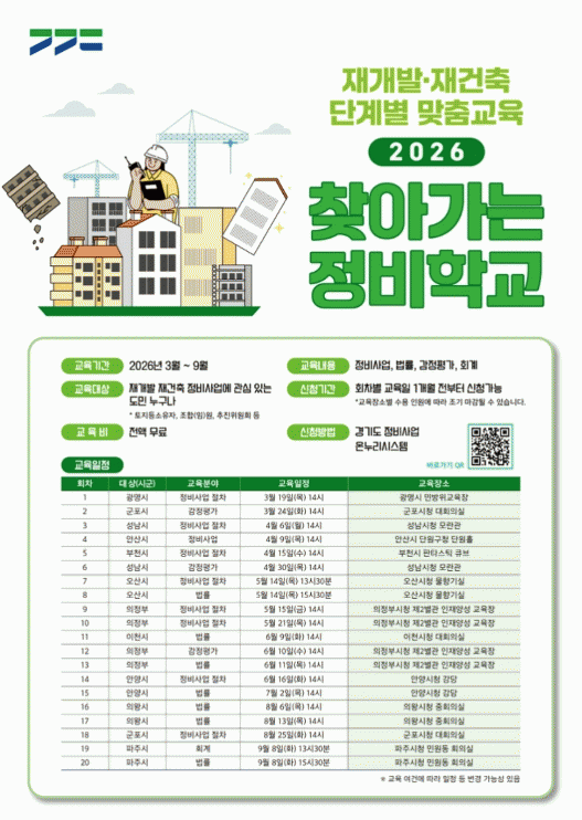 | Àç°³¹ß¡¤Àç°ÇÃàÀÌ ±Ã±ÝÇÏ´Ù¸é? °æ±âµµ, Á¤ºñÁ¶ÇÕ ´ë»ó ¡®Ã£¾Æ°¡´Â Á¤ºñÇб³¡¯ ¿î¿µ `°æ±âµµ Á¤ºñ»ç¾÷ ¿Â´©¸®½Ã½ºÅÛ` ÅëÇØ ±³À° 1°³¿ù ÀüºÎÅÍ ½Åû °¡´É =ÇãÀº¼ ±âÀÚ |