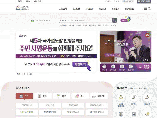 [NWS¹æ¼Û=Çѽ¸ñ ±âÀÚ]¼º³²½Ã´Â 3¿ù 16ÀϺÎÅÍ °æ±â³²ºÎ±¤¿ªÃ¶µµÀÇ ¡®Á¦5Â÷ ±¹°¡Ã¶µµ¸Á ±¸Ãà°èȹ¡¯ ¹Ý¿µÀ» Ã˱¸Çϱâ À§ÇÑ ¿Â¡¤¿ÀÇÁ¶óÀÎ ¹ü½Ã¹Î ¼­¸í¿îµ¿À» ÃßÁøÇÑ´Ù°í ¹àÇû´Ù.