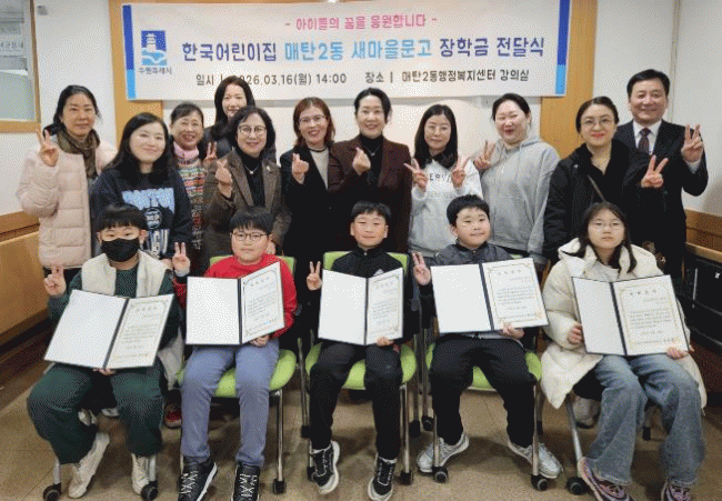 | ¼ö¿ø½Ã ¿µÅ뱸 ¸Åź2µ¿ »õ¸¶À»¹®°í, Çѱ¹¾î¸°ÀÌÁý ÈÄ¿ø ÀåÇÐ±Ý Àü´Þ 2026³â ½ÅÇб⠸ÂÀÌ °ü³» û¼Ò³â¿¡°Ô ÀåÇÐ±Ý ÈÄ¿ø =Çѽ¸ñ ±âÀÚ |