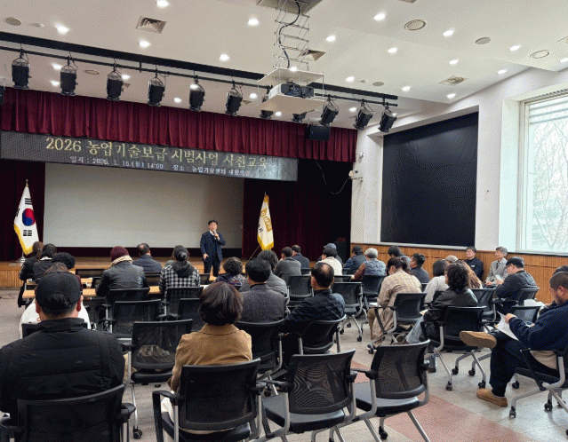 [NWS¹æ¼Û=Çѽ¸ñ ±âÀÚ]±èÆ÷½Ã³ó¾÷±â¼ú¼¾ÅͰ¡ Áö³­ 16ÀÏ, ³ó¾÷±â¼ú¼¾ÅÍ ´ëȸÀǽǿ¡¼­ 2026³â ³ó¾÷±â¼úº¸±Þ ½Ã¹ü»ç¾÷ 7°³ºÐ¾ß 34°³»ç¾÷¿¡ ¼±Á¤³ó°¡ ¹× ´Üü 50¿©¸íÀ» ´ë»óÀ¸·Î º¸Á¶±Ý ÁýÇà ÀýÂ÷ ¹× Áؼö»çÇ×, ºÎÁ¤¼ö±Þ ¹æÁö, »ç¾÷º° ¼¼ºÎÃßÁø »çÇ׿¡ ´ëÇÏ¿© »çÀü±³À°À» ½Ç½ÃÇß´Ù.