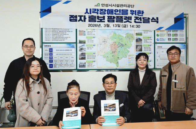[NWS¹æ¼Û=Çѽ¸ñ ±âÀÚ]¾È¼º½Ã½Ã¼³°ü¸®°ø´ÜÀº Áö³ 13ÀÏ ¾È¼º½Ã ½Ã°¢Àå¾ÖÀÎÇùȸ¿¡ ½Ã°¢Àå¾ÖÀÎÀÇ ±³ÅëÁ¤º¸ Á¢±Ù¼º Çâ»óÀ» À§ÇÑ Á¡ÀÚ È«º¸¹°(ÆÊÇ÷¿)À» Àü´ÞÇß´Ù.