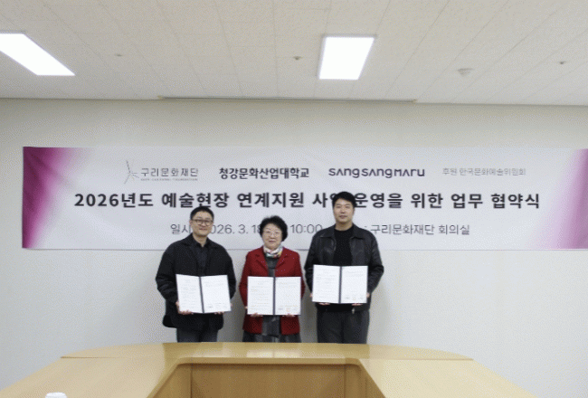 | ±¸¸®¹®ÈÀç´Ü, 2026³âµµ ¿¹¼ú ÇöÀå ¿¬°è»ç¾÷À» À§ÇÑ ¾÷¹« Çù¾à ü°á Çѱ¹¹®È¿¹¼úÀ§¿øÈ¸°¡ Áö¿øÇÏ´Â ¿¹ºñ ¿¹¼úÀÎ ÇöÀå ¿¬°è»ç¾÷ ¿î¿µÀ» À§ÇÑ 3ÀÚ Çù¾÷ ¾÷¹« Çù¾à ü°á =Çѽ¸ñ ±âÀÚ |