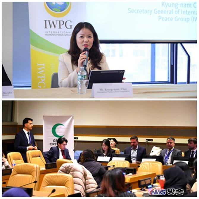 IWPG´Â ¿ÀÀü 10½Ã 30ºÐ À¯¿£ Àα٠óġ¼¾ÅÍ(CCUN) 2Ãþ¿¡¼ ±¹Á¦¿©¼º¸®´õ³×Æ®¿öÅ©(INLW), Æ¢¸£Å°¿¹ ±×¸°Å©·¹¼¾Æ®(Green Crescent)¿Í °øµ¿À¸·Î NGO Æ÷·³À» ¿¾ú´Ù. 'ºÐÀï ¿µÇâ Áö¿ª¿¡¼ÀÇ ¿©¼º ÆòÈ ¸®´õ½Ê: ȸº¹·Â°ú º¯È'¸¦ ÁÖÁ¦·Î ¿¸° À̹ø Çà»ç´Â ³×´ú¶õµåÀÇ ±¹Á¦ ¿©¼º NGOÀÎ INLW¿Í Æ¢¸£Å°¿¹ ÃÖ´ë °øÁߺ¸°Ç ´ÜüÀÎ ±×¸°Å©·¹¼¾Æ®°¡ ºÐÀï Áö¿ª ¿©¼ºÀÇ ÆòÈ ¸®´õ½Ê °È¶ó´Â °øµ¿ÀÇ °¡Ä¡ ½ÇÇöÀ» À§ÇØ ÈûÀ» ¸ðÀ¸¸ç ¼º»çµÆ´Ù.