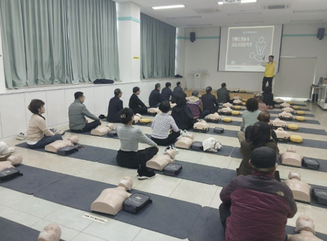 Áö¿ª ÁֹΠ¹× °ü³» »çȸ´Üü ȸ¿ø ¾à 26¸íÀº ¡ã½ÉÆó¼Ò»ý¼ú(CPR) ½Ç½À ¡ãÀÚµ¿½ÉÀåÃæ°Ý±â(AED) »ç¿ë¹ý ¡ãÈÀç ¹ß»ý ½Ã Å»ÃâÀ» À§ÇÑ ¿Ï°±â »ç¿ë¹ý ¡ãÁöÁø¡¤¿¬±â ´ëÇÇ, ÈÀç Áø¾Ð ¸ðÀÇ ÈÆ·Ã µîÀ» ÅëÇØ ÀÀ±Þ»óȲ ´ëÀÀ ¿ª·®À» Ű¿ü´Ù.