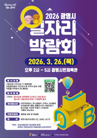 | ±¤¸í½Ã, Ãë¾÷ÀÇ ¹® ¿¬´Ù¡¦ ¡®2026 ÀÏÀÚ¸®¹Ú¶÷ȸ¡¯ 26ÀÏ °³ÃÖ 26ÀÏ ¿ÀÈÄ 2~5½Ã ±¤¸í½Ã¹ÎüÀ°°ü¿¡¼ °³ÃÖ¡¦ ÇöÀå¸éÁ¢¡¤Á÷¹«ÄÁ¼³ÆÃ¡¤Ã¼Çè±îÁö ÇÑÀÚ¸® =ÇãÀº¼ ±âÀÚ |