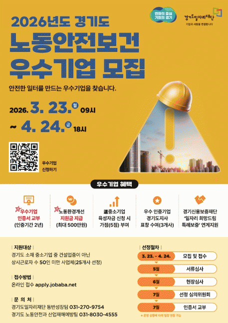 | °æ±âµµ, ³ëµ¿¾ÈÀüº¸°Ç ¿ì¼ö Áß¼Ò±â¾÷ ¸ðÁý¡¦ÃÖ´ë 500¸¸¿ø Áö¿ø µµ³» 50ÀÎ ¹Ì¸¸ Áß¼Ò±â¾÷ ´ë»ó, »ê¾÷ÀçÇØ ¿¹¹æ ¹®È È®»ê ¸ñÀû =Çѽ¸ñ ±âÀÚ |