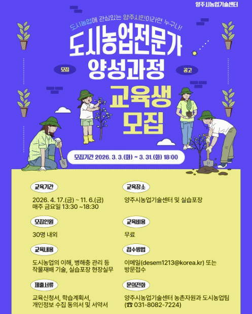 | ¾çÁÖ½Ã, 2026³â µµ½Ã³ó¾÷Àü¹®°¡ ¾ç¼º°úÁ¤ ±³À°»ý ¸ðÁý =Çѽ¸ñ ±âÀÚ |