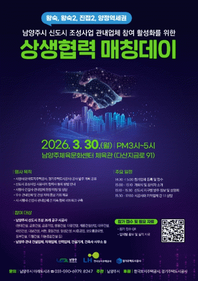 ¡®»ó»ýÇù·Â ¸Åε¥ÀÌ¡¯¿¡ Âü¿©¸¦ Èñ¸ÁÇÏ´Â °Ç¼³¡¤ÀÚÀ硤Àåºñ¡¤Àη µî °ü³» °Ç¼³ °ü·Ã ¾÷ü´Â QRÄÚµå¿Í ³×À̹öÆûÀ» ÅëÇØ »çÀü Á¢¼öÇÒ ¼ö ÀÖ´Ù. Çà»ç¿Í °ü·ÃÇÑ ÀÚ¼¼ÇÑ »çÇ×Àº ½Ã ¹Ì·¡µµ½Ã°ú·Î ¹®ÀÇÇÏ¸é µÈ´Ù.