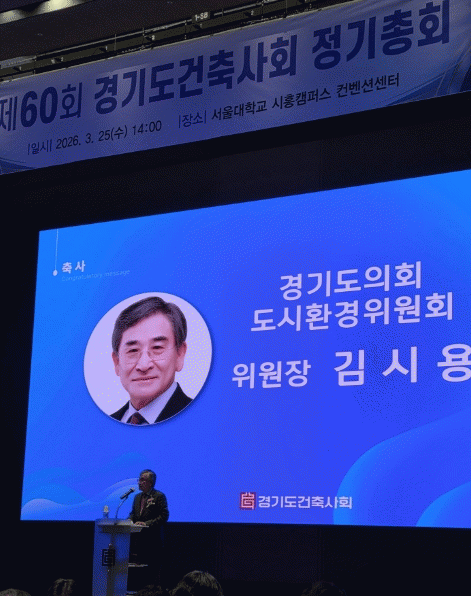 [NWS¹æ¼Û=Çѽ¸ñ ±âÀÚ]°æ±âµµÀÇȸ µµ½Ãȯ°æÀ§¿øÈ¸ ±è½Ã¿ë À§¿øÀå(±¹¹ÎÀÇÈû¡¤±èÆ÷3)Àº 25ÀÏ °æ±âµµ°ÇÃà»çȸ Á¦60ȸ Á¤±âÃÑȸ¿¡ Âü¼®ÇØ °ÇÃà ºÐ¾ß ¹ßÀüÀ» À§ÇØ Çå½ÅÇØ ¿Â °ü°èÀڵ鿡°Ô °¨»ç¿Í °Ý·ÁÀÇ ¶æÀ» ÀüÇß´Ù.