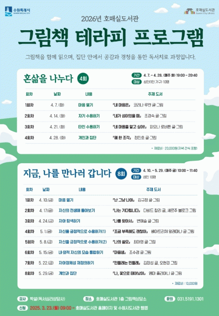 È£¸Å½Çµµ¼°üÀº 4¿ùºÎÅÍ 10¿ù±îÁö ÃÑ 20ȸ ±×¸²Ã¥ Àι®Ä¡À¯ÇÁ·Î±×·¥ ¡®±×¸²Ã¥Å×¶óÇÇ¡¯µµ ¿î¿µÇÑ´Ù. Àü¹® µ¶¼½É¸®»ó´ã»ç¿Í ÇÔ²² ±×¸²Ã¥À» ÀÐ°í ¼ÒÅëÇϸç Á¤¼ ȸº¹°ú °ü°è ȸº¹À» µ½´Â´Ù.
