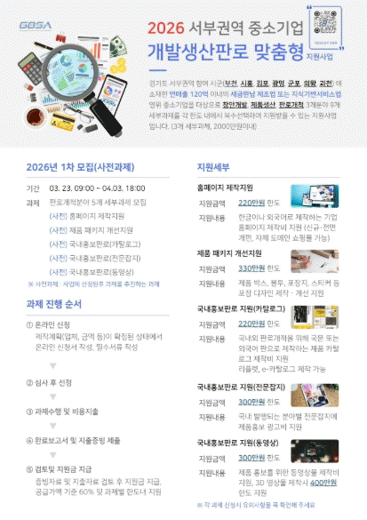 ½Ã´Â Áß¼Ò±â¾÷ÀÇ ¼ºÀå ±â¹ÝÀ» ³ÐÈ÷°í °æÀï·ÂÀ» ³ôÀ̱â À§ÇØ ¿À´Â 4¿ù 3ÀϱîÁö ¡®2026³â Áß¼Ò±â¾÷ °³¹ß»ý»êÆÇ·Î ¸ÂÃãÇü Áö¿ø»ç¾÷¡¯ Âü¿©±â¾÷À» ¸ðÁýÇÑ´Ù.