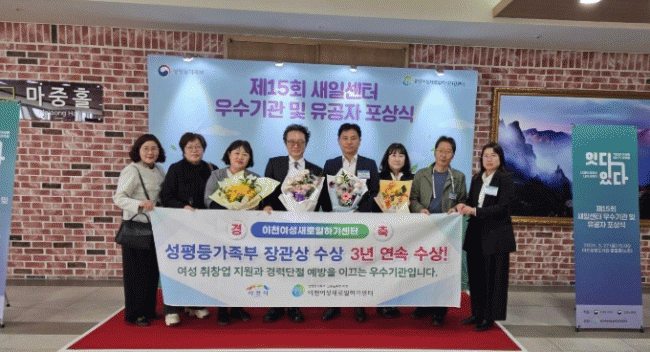 ¾Æ¿ï·¯¡®Á¦µµÀû Áö¿øÀ» ³Ñ¾î, ÀÚ¹ßÀû Çõ½ÅÀ¸·Î À̾îÁø Á¶Á÷¹®È °³¼±¡¯»ç·Ê·Î'»õÀϼ¾ÅÍ ¿©¼º°æÁ¦È°µ¿Áö¿ø ¿ì¼ö»ç·Ê °ø¸ðÀü'¿¡¼ °æ·Â´ÜÀý¿¹¹æ »çÈİü¸® ºÎºÐ Àå·Á»ó(Ãë¾÷»ó´ã»ç Áö¹Î°æ)À» ¼ö»óÇϸç, ´Ü¼øÇÑ Ãë¾÷ ¿¬°è¸¦ ³Ñ¾î ¿©¼ºÀÇ Áö¼ÓÀûÀÎ °æÁ¦È°µ¿ Âü¿©¿Í °æ·Â À¯Áö¸¦ Áö¿øÇÏ´Â ¼º°ú¸¦ °Åµ×´Ù.