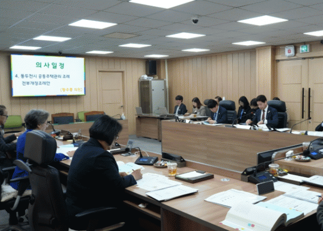 ±¸Ã¼ÀûÀ¸·Î´Â, ȲÁÖ·æ ÀÇ¿ø ´ëÇ¥ ¹ßÀÇ¾È ¡ã'µ¿µÎõ½Ã °øµ¿ÁÖÅðü¸® Á¶·Ê ÀüºÎ °³Á¤Á¶·Ê¾È', ±èÀç¼ö ÀÇ¿ø ´ëÇ¥ ¹ßÀÇ¾È ¡ã'µ¿µÎõ½Ã ÀÚÄ¡¹ý±Ô Á¤ºñ¿¡ µû¸¥ Àϰý°³Á¤±ÔÄ¢¾È', ±Ç¿µ±â ÀÇ¿ø ´ëÇ¥ ¹ßÀÇ¾È ¡ã'µ¿µÎõ½Ã ÀÚÄ¡¹ý±Ô Á¤ºñ¿¡ µû¸¥ Àϰý°³Á¤Á¶·Ê¾È' ¹× ¡ã'µ¿µÎõ½Ã ÀÚÀ²¹æ¹ü´ë Áö¿ø¿¡ °üÇÑ Á¶·Ê ÀϺΰ³Á¤Á¶·Ê¾È', ¹ÚÀιü ÀÇ¿ø ´ëÇ¥ ¹ßÀÇ¾È ¡ã'µ¿µÎõ½ÃÀÇȸ Á÷Àå ³» ±«·ÓÈû ±ÝÁö¿¡ °üÇÑ Á¶·Ê¾È', ÀÓÇö¼÷ ÀÇ¿ø ´ëÇ¥ ¹ßÀÇ¾È ¡ã'µ¿µÎõ½Ã À̵¿³ëµ¿ÀÚ ½°ÅÍ ¼³Ä¡ ¹× ¿î¿µ Á¶·Ê¾È'°ú ÀÌÀº°æ ÀÇ¿ø ´ëÇ¥ ¹ßÀÇ¾È ¡ã'µ¿µÎõ½ÃÀÇȸ Áö¹æ°ø¹«¿ø º¹¹«Á¶·Ê ÀϺΰ³Á¤Á¶·Ê¾È' À» °ËÅäÇß´Ù. ¶ÇÇÑ ÁýÇàºÎ¿¡¼ Á¦ÃâÇÑ ¡ã'µ¿µÎõ½Ã À§¿øÈ¸ ½Çºñº¯»ó Á¶·Ê ÆóÁöÁ¶·Ê¾È'µî 15°³ Á¶·Ê¾È ¹× »ç¾÷ ÁøÇà »çÇ׿¡ ´ëÇÏ¿©µµ ÁýÇàºÎ °ü°èÀÚµéÀÇ ¼³¸íÀ» µè°í ½Éµµ ÀÖ°Ô ³íÀÇÇÏ´Â ÀÚ¸®¸¦ °¡Á³´Ù.