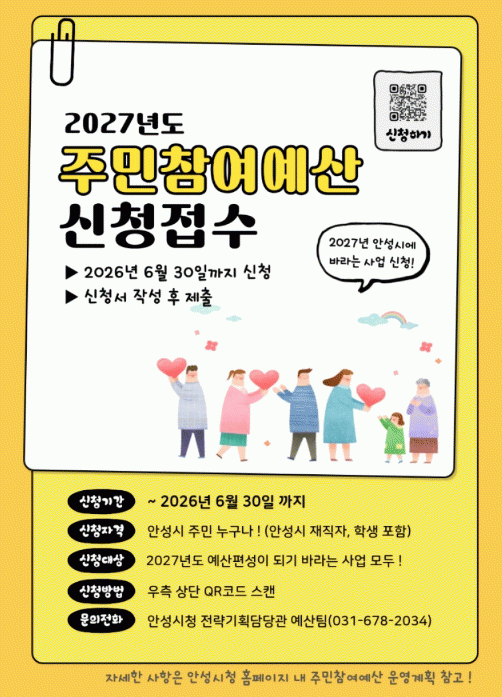 | ¾È¼º½Ã '³»°¡ ³½ ¾ÆÀ̵ð¾î ¿¹»êÀÌ µÈ´Ù!' 2027³â ÁÖ¹ÎÂü¿©¿¹»ê»ç¾÷ °ø¸ð ½ÃÀÛ =Çѽ¸ñ ±âÀÚ |