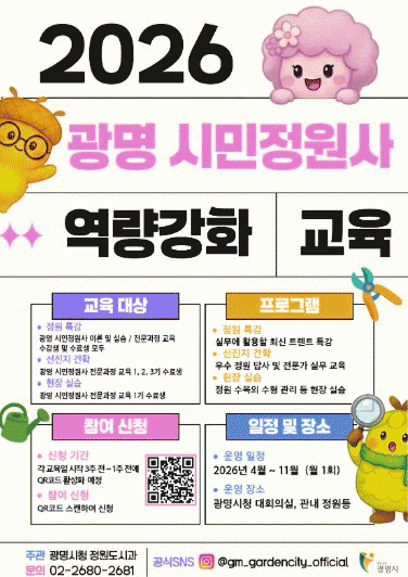½Ã´Â 4¿ùºÎÅÍ ¡®2026³â ±¤¸í ½Ã¹ÎÁ¤¿ø»ç ¿ª·®°È ±³À°¡¯À» º»°Ý ¿î¿µÇÑ´Ù. ½Ã¹ÎÁ¤¿ø»ç °úÁ¤À» À̼ö ÁßÀ̰ųª ¼ö·áÇÑ ½Ã¹ÎÀ» ´ë»óÀ¸·Î Á¶°æ¡¤Á¤¿ø ºÐ¾ß ÃֽŠÈ帧À» ¹Ý¿µÇÑ Àü¹®°¡ Ư°, ¼±ÁøÁö °ßÇÐ, ÇöÀå ½Ç½À µî ÇöÀå Á᫐ ½ÉÈ °úÁ¤À¸·Î ±¸¼ºÇß´Ù.