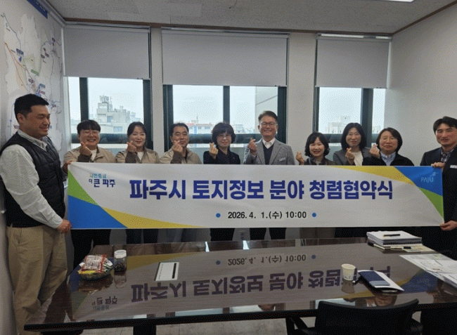 | ÆÄÁÖ½Ã, Çѱ¹±¹ÅäÁ¤º¸°ø»ç¿Í û·ÅÇùÀÇü ±¸¼º Çù¾à ü°á ¡°½Å·Ú¹Þ´Â ÅäÁöÇàÁ¤À» À§ÇÑ ¾à¼Ó¡± =Çѽ¸ñ ±âÀÚ |