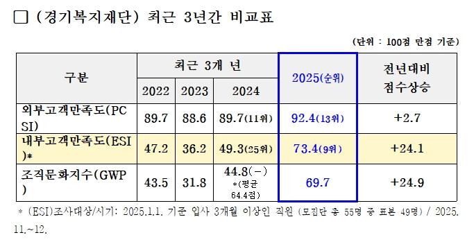 °æ±âº¹ÁöÀç´Ü(´ëÇ¥ÀÌ»ç ÀÌ¿ëºó)ÀÌ '2025³â °æ±âµµ °ø°ø±â°ü °í°´¸¸Á·µµ Á¶»ç'¿¡¼ ¿ÜºÎ¡¤³»ºÎ °í°´¸¸Á·µµ¸¦ µ¿½Ã¿¡ ²ø¾î¿Ã¸®´Â ¼º°ú¸¦ °Åµ×´Ù.