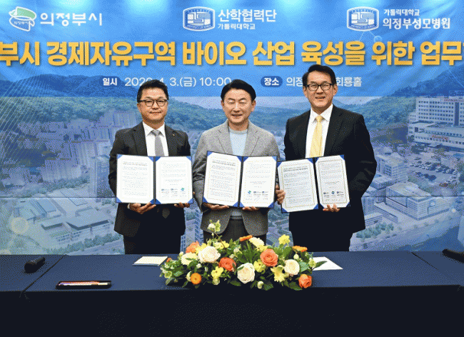 [NWS¹æ¼Û=Çѽ¸ñ ±âÀÚ]ÀÇÁ¤ºÎ½Ã´Â 4¿ù 3ÀÏ ½Ãû ȸ·æÈ¦¿¡¼ °¡Å縯´ëÇб³ ÀÇÁ¤ºÎ¼º¸ðº´¿ø, °¡Å縯´ëÇб³ »êÇÐÇù·Â´Ü°ú ÇÔ²² ¡®ÀÇÁ¤ºÎ½Ã °æÁ¦ÀÚÀ¯±¸¿ª ¹ÙÀÌ¿À »ê¾÷ À°¼ºÀ» À§ÇÑ ¾÷¹«Çù¾à¡¯À» ü°áÇß´Ù.