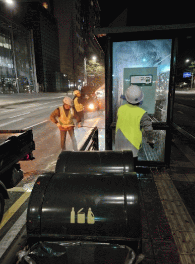 °Ü¿ïö Àû¼³°ú ¹Ì¼¼¸ÕÁö·Î ¿À¿°µÈ ¹ö½ºÁ¤·ùÀå ÁöºØ°ú ÀÇÀÚ µîÀ» °í¾Ð¼¼Ã´±â·Î ¼¼Ã´Çϰí, °íÂøµÈ ¸ÕÁö¿Í ¿À¿°¹°ÁúÀ» Á¦°ÅÇÏ´Â µî ½Â°­Àå Àü¹Ý¿¡ ´ëÇÑ È¯°æÁ¤ºñ¸¦ ÁøÇàÇß´Ù.