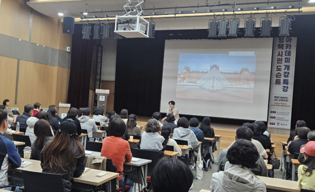 [NWS¹æ¼Û=Çѽ¸ñ ±âÀÚ]ÆòÅýô Áö³ 7ÀÏ Æò»ýÇнÀ¼¾ÅÍ ´ë°´ç¿¡¼ ÆòÅà ½Ã¹Îµµ½¼Æ® ¾ÆÄ«µ¥¹Ì °úÁ¤ ÇнÀÀÚ¿Í ¹®È¿¹¼ú¿¡ °ü½É ÀÖ´Â ½Ã¹Î µî 80¿© ¸íÀÌ Âü¼®ÇÑ °¡¿îµ¥ °³° Ư°À» °³ÃÖÇß´Ù°í ¹àÇû´Ù.