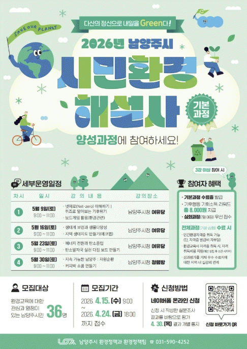 [NWS¹æ¼Û=Çѽ¸ñ ±âÀÚ]³²¾çÁֽô ¿À´Â 24ÀϱîÁö ½Ã¹ÎÀÌ Á÷Á¢ ±âÈÄÀ§±â¿Í »ýÅÂȯ°æÀ» ¹è¿ì°í À̸¦ Áö¿ª»çȸ¿Í ³ª´©´Â ¡®2026³â ³²¾çÁֽà ½Ã¹Îȯ°æÇؼ³»ç ±âº»°úÁ¤¡¯ Âü¿©ÀÚ¸¦ ¸ðÁýÇÑ´Ù°í 15ÀÏ ¹àÇû´Ù.