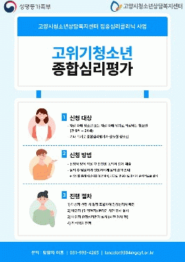 | °í¾ç½Ãû¼Ò³â»ó´ãº¹Áö¼¾ÅÍ, ¡®°íÀ§±âû¼Ò³âÁ¾Çսɸ®Æò°¡¡¯ ½Å±Ô»ç¾÷ ÃßÁø °íÀ§±âû¼Ò³â ´ë»ó¡¦Àü¹® ÀÓ»ó½É¸®»çÀÇ Á¾Çսɸ®Æò°¡·Î Á¤½Å°Ç° ȸº¹ Áö¿ø =Çѽ¸ñ ±âÀÚ |