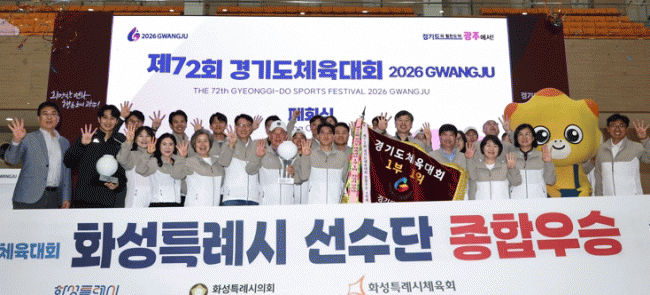 È­¼ºÆ¯·Ê½Ã ¼±¼ö´Ü°ú °ü°èÀÚµéÀÌ Á¦72ȸ °æ±âµµÃ¼À°´ëȸ Á¾ÇÕ¿ì½ÂÀ» È®Á¤ÇÑ µÚ 4¿¬ÆÐ ´Þ¼ºÀ» ±â³äÇÏ¸ç ´Üü·Î ±â³äÃÔ¿µÀ» Çϰí ÀÖ´Ù.