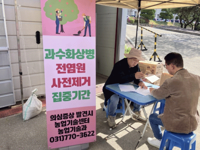 ÁÖ¼ºÇý ³ó¾÷±â¼ú¼¾ÅÍ ¼ÒÀåÀº ¡°°³È±â ¹æÁ¦´Â °ú¼öÈ»óº´ ¿¹¹æÀÇ ÇÙ½ÉÀÎ ¸¸Å ³ó°¡¿¡¼´Â ¾È³»µÈ ½Ã±â¿¡ ¸ÂÃç ¾àÁ¦¸¦ ¹Ýµå½Ã »ìÆ÷ÇØ Áֽñ⠹ٶõ´Ù¡±¸ç ¡°¾ÕÀ¸·Îµµ Àû±â ¹æÁ¦¿Í ÇöÀå Áöµµ¸¦ ÅëÇØ °ú¼öÈ»óº´ ¿¹¹æ¿¡ ÃÖ¼±À» ´ÙÇϰڴ١±°í ¸»Çß´Ù.