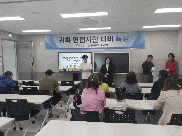 [NWS¹æ¼Û=Çѽ¸ñ ±âÀÚ]Æ÷õ½Ã´Â °ü³» °ÅÁÖ ¿Ü±¹ÀÎÁÖ¹ÎÀ» ´ë»óÀ¸·Î ½Ã Á÷¿µÀ¸·Î ¿î¿µ ÁßÀÎ Æ÷õ¿Ü±¹ÀÎÁÖ¹ÎÁö¿ø¼¾ÅÍ¿¡¼ ¡®±ÍÈ ¸éÁ¢½ÃÇè ´ëºñ Ư°¡¯À» ¿î¿µÇÑ´Ù°í ¹àÇû´Ù.