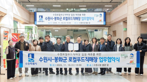 [NWS¹æ¼Û=Çѽ¸ñ ±âÀÚ]¼ö¿øÆ¯·Ê½Ã¿Í ºÀÈ­±º³ó¾î¾÷ȸÀǼҴ 19ÀÏ ¼ö¿ø½Ãû¿¡¼­ ·ÎÄÃǪµå ÀÔÁ¡ Çù¾àÀ» ü°áÇß´Ù. Çù¾à½ÄÀº À̳¯ ½Ãû º°°ü ¾Õ¿¡¼­ ¿­¸° ¡®ºÀÈ­ ¼ö¿ø Ä·ÇÎÀå °³Àå ±â³ä ³ó»ê¹° Á÷°Å·¡ÀåÅÍ¡¯¿¡¼­ ÁøÇàµÆ´Ù. ¼ö¿ø½Ã´Â Àα¸¼Ò¡¦