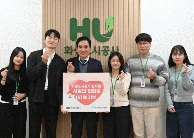 [NWS¹æ¼Û=Çѽ¸ñ ±âÀÚ]È­¼ºµµ½Ã°ø»ç´Â ¿¬¸»À» ¸Â¾Æ ÀÓÁ÷¿øµéÀÇ ÀÚ¹ßÀû Âü¿©·Î ¸ðÀÎ ÇåÇ÷Áõ 137¸Å¸¦ Çѱ¹¹éÇ÷º´¼Ò¾Æ¾ÏÇùȸ¿¡ ±âºÎÇϸç, »ý¸í ³ª´®À» ÅëÇÑ »çȸÀû °¡Ä¡ ½ÇÇö¿¡ ³ª¼¹´Ù°í ¹àÇû´Ù. HU°ø»ç´Â 2021³âºÎÅÍ ³ë»çÇÕµ¿ ¡®»ç¶ûÀÇ Ç塦