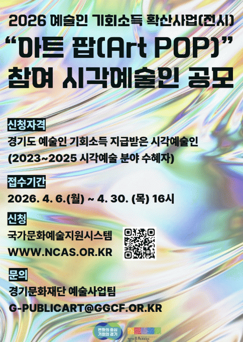 [»çȸ] °æ±âµµ-°æ±â¹®È­Àç´Ü, 2026 ¿¹¼úÀÎ ±âȸ¼Òµæ È®»ê»ç¾÷(Àü½Ã) "¾ÆÆ® ÆË(Art POP)" Âü¿© ½Ã°¢¿¹¼úÀÎ °ø¸ð |2026. 04.06
