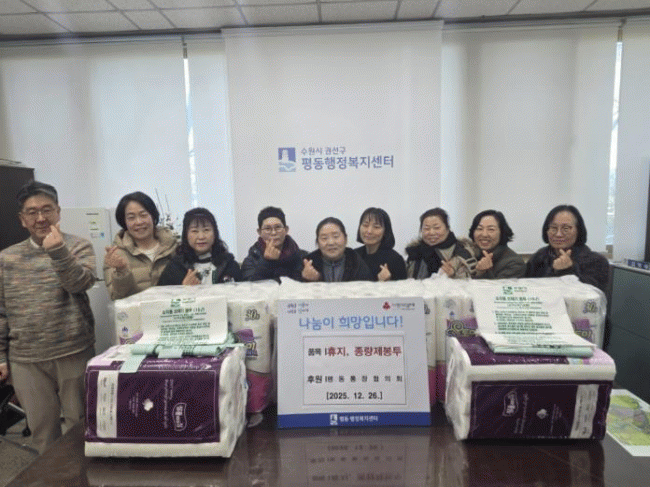 [NWS¹æ¼Û=Çѽ¸ñ ±âÀÚ]¼ö¿ø½Ã ±Ç¼±±¸ Æòµ¿ ÅëÀåÇùÀÇȸ´Â Áֹεé°ú ÇÔ²² ¼ö°ÅÇÑ Á¾ÀÌÆÑÀ¸·Î ±³È¯¹ÞÀº ÈÞÁö¿Í Á¾·®Á¦ºÀÅõ¸¦ Àü·® ±âºÎÇÏ¸ç µû¶æÇÑ ³ª´®À» ½ÇõÇß´Ù. À̹ø ±âºÎ´Â Æòµ¿ ÅëÀåµéÀÌ Á¾ÀÌÆÑ ºÐ¸®¹èÃâ Ȱ¼ºÈ­¸¦ À§ÇØ ²ÙÁØÈ÷ ¼ö°Å¡¦