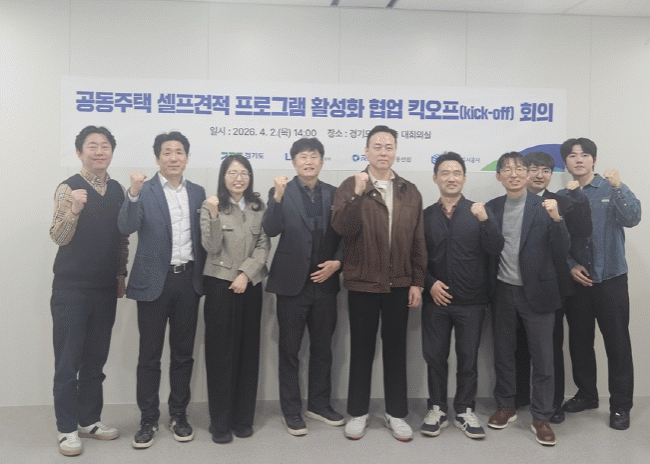 [NWS¹æ¼Û=Çѽ¸ñ ±âÀÚ]°æ±âµµ°¡ µµ°¡ °³¹ßÇÑ ¡®°øµ¿ÁÖÅà ¼¿ÇÁ °ßÀû ÇÁ·Î±×·¥¡¯ÀÇ Àü±¹ È®´ë¸¦ Çѱ¹ºÎµ¿»ê¿ø(K-apt)¡¤Çѱ¹ÅäÁöÁÖÅðø»ç(LH)¡¤°æ±âÁÖÅõµ½Ã°ø»ç(GH)¿Í ¼ÕÀâ°í ÃßÁøÇÑ´Ù. °øµ¿ÁÖÅà ¼¿ÇÁ °ßÀû ÇÁ·Î±×·¥Àº ¾ÆÆÄÆ® ´ÜÁö¸¶´Ù õ¡¦