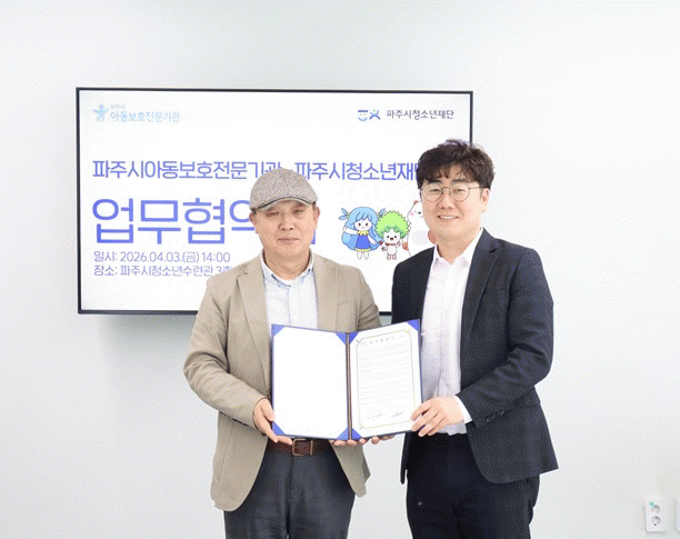 [»çȸ] (Àç)ÆÄÁÖ½Ãû¼Ò³âÀç´Ü-ÆÄÁֽþƵ¿º¸È£Àü¹®±â°ü, ¾Æµ¿¡¤Ã»¼Ò³â °Ç°­ÇÑ ¼ºÀå À§ÇÑ ¾÷¹«Çù¾à ü°á |2026. 04.03