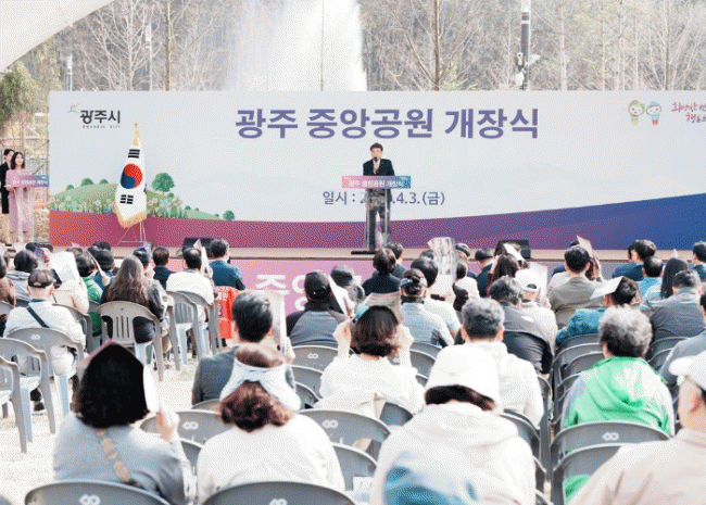 [NWS¹æ¼Û=Çѽ¸ñ ±âÀÚ]±¤Áֽô 3ÀÏ °æ¾Èµ¿ »ê2-1 ÀÏ¿ø¿¡¼­ ¹Î°£ °ø¿ø Ư·Ê»ç¾÷À¸·Î Á¶¼ºµÈ ±¤ÁÖ Áß¾Ó°ø¿ø °³Àå½ÄÀ» °³ÃÖÇß´Ù. À̳¯ Çà»ç¿¡´Â ¹æ¼¼È¯ ½ÃÀåÀ» ºñ·ÔÇØ ±¹È¸ÀÇ¿ø, µµ¡¤½ÃÀÇ¿ø, Áö¿ª ÁÖ¹Î, ¹Î°£»ç¾÷ ½ÃÇàÀÚ µî 200¿© ¸íÀÌ Âü¡¦