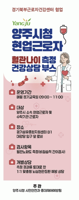 [»çȸ] ¾çÁÖ½Ã, Çö¾÷±Ù·ÎÀÚ ³ú½ÉÇ÷°ü Áúȯ ¿¹¹æ '°Ç°­»ó´ã ºÎ½º' ¿î¿µ |2026. 04.20