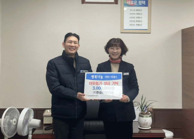 [NWS¹æ¼Û=Çѽ¸ñ ±âÀÚ]ÆòÅýà ûºÏÀ¾¿¡ ÀÖ´Â ¢ßÇö½ÂÁ¾ÇհǼ³Àº Áö³­ 15ÀÏ °ü³» ¾î·Á¿î ÀÌ¿ôÀ» À§ÇØ ÀÌ¿ôµ½±â ¼º±Ý 300¸¸ ¿øÀ» ûºÏÀ¾ ÇàÁ¤º¹Áö¼¾ÅÍ¿¡ Àü´ÞÇß´Ù. ¼º±ÝÀ» ±âºÎÇÑ ÀÌ½Â±Ô ´ëÇ¥´Â ¡°¿¬¸»À» ¾ÕµÎ°í ¾î·Á¿î ÀÌ¿ôÀ» À§ÇØ Á¶±ÝÀÌ¡¦