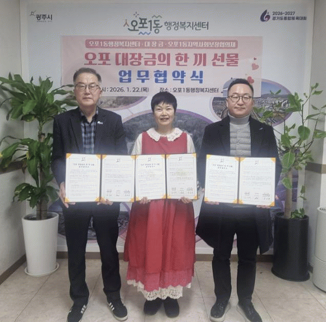 [NWS¹æ¼Û=Çѽ¸ñ ±âÀÚ]±¤Áֽà ¿ÀÆ÷1µ¿Àº Áö³­ 22ÀÏ Áö¿ª ³» À½½ÄÁ¡ ´ëÀå±Ý, ¿ÀÆ÷1µ¿ Áö¿ª»çȸº¸ÀåÇùÀÇü¿Í ÇÔ²² Àú¼Òµæ Ãë¾à°èÃþÀÇ ½Ä»ýȰ Áö¿øÀ» À§ÇÑ ¡®¿ÀÆ÷ ´ëÀå±ÝÀÇ ÇÑ ³¢ ¼±¹°¡¯ ¾÷¹«Çù¾àÀ» ü°áÇß´Ù. À̹ø Çù¾àÀº °á½Ä ¿ì·Á°¡ Àִ¡¦