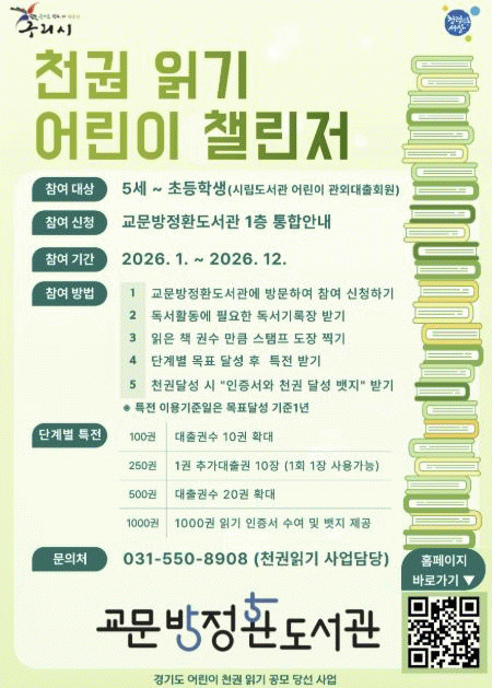 [»çȸ] ±¸¸®½Ã ±³¹®¹æÁ¤È¯µµ¼­°ü, 'õ ±Ç Àб⠾ÀÌ Ã§¸°Àú' Âü°¡ÀÚ ¸ðÁý |2026. 02.19