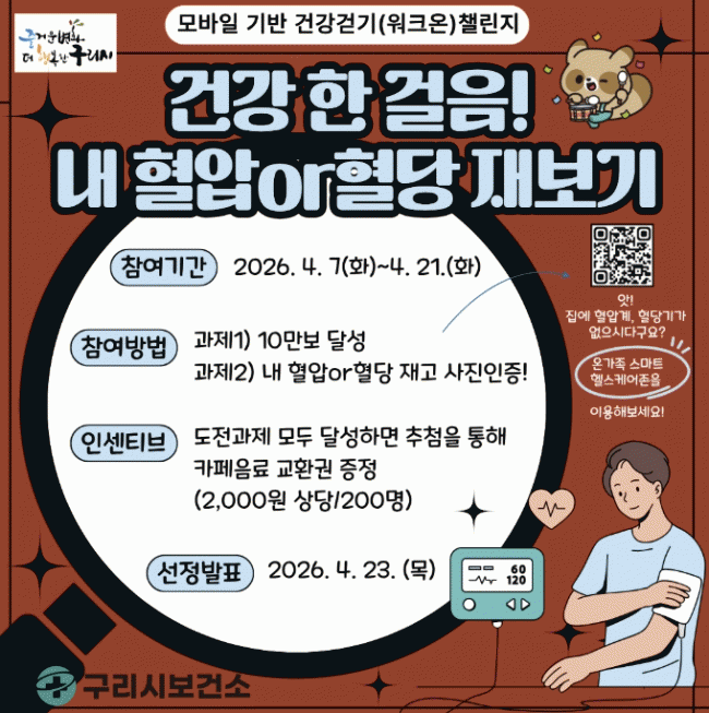 [»çȸ] ±¸¸®½Ã, '°Ç°­ ÇÑ °ÉÀ½! ³» Ç÷¾Ð¡¤Ç÷´ç À纸±â' ¿öÅ©¿Â µµÀü Àձ⠿ |2026. 04.06