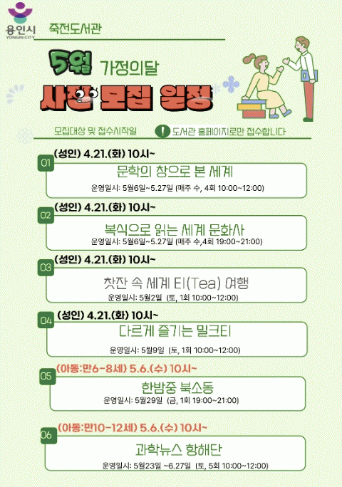 [NWS¹æ¼Û=Çѽ¸ñ ±âÀÚ]¿ëÀÎÆ¯·Ê½Ã Á×Àüµµ¼­°üÀº ¿À´Â 5¿ù °¡Á¤ÀÇ ´ÞÀ» ¸Â¾Æ ¡®2026³â 5¿ù µ¶¼­¹®È­Çà»ç¡¯¸¦ °³ÃÖÇÑ´Ù. À̹ø Çà»ç´Â Á×Àüµµ¼­°üÀÇ Æ¯¼ºÈ­ ÁÖÁ¦ÀÎ ¡®¼¼°è ¹®È­¡¯¸¦ Áß½ÉÀ¸·Î ÀÌ·ïÁø´Ù. ÆòÀÏ ³· ½Ã°£´ë ÀÌ¿ëÀÌ ¾î·Á¿î Á÷ÀåÀΡ¦