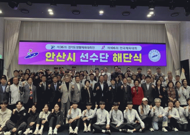 [NWS¹æ¼Û=Çѽ¸ñ ±âÀÚ]¾È»ê½Ã´Â Áö³­ 29ÀÏ ¾È»ê»ó°øÈ¸ÀÇ¼Ò ±×·¹ÀÌÆ®ÄÁº¥¼Ç¿¡¼­ ¡®Á¦36ȸ °æ±âµµ»ýȰüÀ°´ëÃàÀü ¹× Á¦106ȸ Àü±¹Ã¼À°´ëȸ ¾È»ê½Ã ¼±¼ö´Ü ÇØ´Ü½Ä¡¯À» °³ÃÖÇÏ°í ¾È»ê½Ã¸¦ ºû³½ ¼±¼ö´ÜÀÇ ³ë°í¸¦ °Ý·ÁÇÏ´Â ÀÚ¸®¸¦ ¸¶·ÃÇß´Ù°í 3¡¦