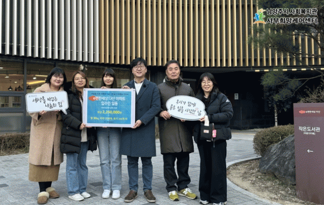 [NWS¹æ¼Û=Çѽ¸ñ ±âÀÚ]³²¾çÁֽô Áö³­ 5ÀÏ ¼­ºÎÈñ¸ÁÄɾÅͰ¡ ÀÌÆíÇѵ¿Çà ºÀ»ç´Ü(´ÜÀå ÀÌÁÖÇü)À¸·ÎºÎÅÍ ÀÌ¿ô µ½±â ¼º±Ý 225¸¸ ¿ø°ú »ýÇÊǰÀ» Àü´Þ¹Þ¾Ò´Ù°í 7ÀÏ ¹àÇû´Ù. ÀÌÆíÇѵ¿Çà ºÀ»ç´ÜÀº ´Ù»ê1µ¿ eÆíÇѼ¼»ó´Ù»ê ¾ÆÆÄÆ® ÀÔÁֹεé·Î ¡¦