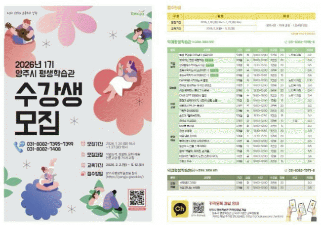 [»çȸ] ¾çÁÖ½Ã, 2026³â 1±â Æò»ýÇнÀ ÇÁ·Î±×·¥ ¼ö°­»ý ¸ðÁý |2026. 01.19
