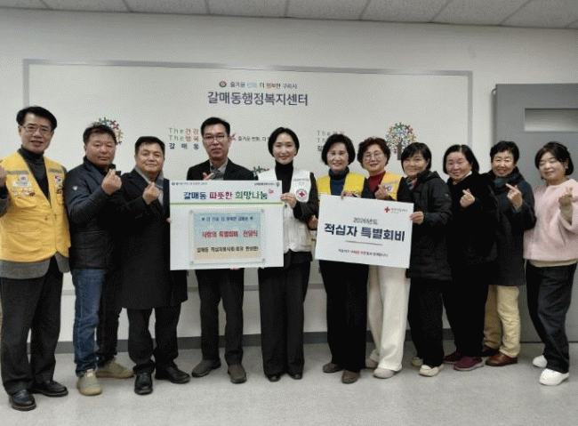 [NWS¹æ¼Û=Çѽ¸ñ ±âÀÚ]±¸¸®½Ã °¥¸Åµ¿ ÇàÁ¤º¹Áö¼¾ÅÍ´Â Áö³­ 1¿ù 28ÀÏ, Áö¿ª ³» 7°³ ±â°£´Üü·ÎºÎÅÍ ¼Ò¿ÜµÈ ÀÌ¿ôÀ» µ½±â À§ÇÑ Àû½ÊÀÚ Æ¯º°È¸ºñ 125¸¸ ¿øÀ» ¹Þ¾Æ ´ëÇÑÀû½ÊÀڻ翡 Àü´ÞÇß´Ù. À̹ø Àû½ÊÀÚ Æ¯º°È¸ºñ Àü´Þ¿¡´Â ¡ã°¥¸Åµ¿ ÁÖ¹ÎÀÚÄ¡¡¦