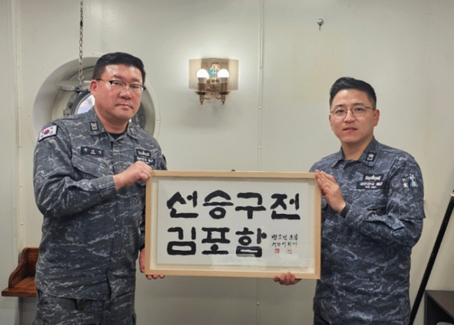 [NWS¹æ¼Û=Çѽ¸ñ ±âÀÚ]±èÆ÷½Ã°¡ Ä£¼±°á¿¬À» ¸Î°í ÀÖ´Â ÇØ±º ±èÆ÷ÇÔ ½ÅÀÓ ÇÔÀå(ÇÔÀå ÀÌÁØÀÏ) ÃëÀÓÀ» °è±â·Î, Áö¿ª ¿¹¼úÀÎÀÇ Ä£ÇÊ ¼­¿¹·Î Á¦ÀÛÇÑ ÇÔÇ¥¾î¸¦ Àü´ÞÇÏ¸ç ±èÆ÷½Ã¿Í ±èÆ÷ÇÔ °£ À¯´ë °­È­¸¦ À§ÇÑ ±³·ù¸¦ À̾´Ù. À̹ø Àü´ÞµÈ ÇÔ¡¦