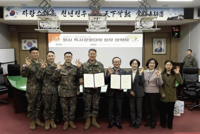 [NWS¹æ¼Û=Çѽ¸ñ ±âÀÚ]¿¬Ãµ±º°ú Á¦5º¸º´»ç´ÜÀº 2026³â 3¿ù 11ÀÏ ¡®¿­¼èºÎ´ë µ¶¼­°æ¿µ´ëÇС¯ÀÇ ¿øÈ°ÇÑ ¿î¿µ°ú Çù·ÂÀ» À§ÇÑ ¾÷¹«Çù¾àÀ» ü°áÇß´Ù. À̹ø Çù¾àÀº 'µ¶¼­°æ¿µ´ëÇÐ' »ç¾÷ÀÇ Ã¼°èÀû ¿î¿µ°ú ¿¬°è, Çù·ÂÀ» ÁÖ¿ä ³»¿ëÀ¸·Î ÇÑ´Ù. ¡®¡¦