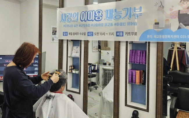 [NWS¹æ¼Û=Çѽ¸ñ ±âÀÚ]¼ö¿ø½Ã ÆÈ´Þ±¸ ¸Å±³µ¿ ÇàÁ¤º¹Áö¼¾ÅÍ´Â Áö³­ 8ÀÏ ¸Å±³µ¿ ¼ÒÀç ¸¶¸¦¸° Çì¾î¼ó°ú ÇÔ²² ¡®»ç¶ûÀÇ ÀÌ¹Ì¿ë ¼­ºñ½º¡¯¸¦ ½Ç½ÃÇß´Ù. À̳¯ ¸Ó¸® ¼ÕÁúÀ» Èñ¸ÁÇÏ´Â °ü³» ¾î·Á¿î ÀÌ¿ô 16¸í¿¡°Ô ĿƮ ¹× µå¶óÀÌ ¼­ºñ½º¸¦ Á¦°øÇϸ硦